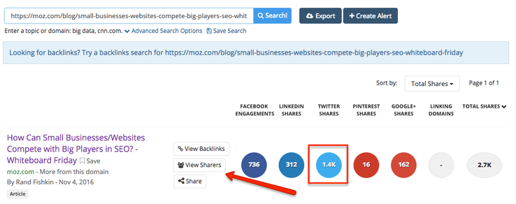 One simple but effective way to accomplish this is to use BuzzSumo to discern prominent shares of your amplifiers' content. (You'll need to sign up for a free subscription, at least, but the tool is one of the best on the market.)